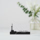 Moderner gestreifter Ölfeldentwurf. Eine schwarze Erdölbohrungs-Anlage-Silhouette mit einem modernen weißen und grauen gestreiften Hintergrund. Nach der Personifizierung dieser Schablone, können Sie beschließen "zu klicken, um weiter besonders anzufertigen" und die Grau farbigen Streifen zu einer Farbe Ihres Wählens zu ändern. Wenn Sie beschließen, die Farbe des Hintergrundes zu ändern, vergessen Sie nicht, die Farbe des grauen Streifens des Singles nahe der Unterseite zu ändern, die auch verlassen wird.