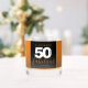 Mit diesem stilechten Weinglas, das sich durch einen schwarzen, weißen und orangefarbenen Block und handgeschriebenes Set auf glänzenden, orangefarbenen, schwarzen und rauchgrauen Hintergründen auszeichnet, feiern Sie den großen 5 oh Stil. Umkehrung zeigt identisches Design. Design © W.H. Sim. Weitere Informationen unter zazzle.com/expressionsoccasions