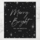 Moderne Ferienweinetiketten mit "Merry and Bright" in weißem, handgeschriebenem Schriftzeichen, umgeben von Sternengrenzen mit schwarzem Hintergrund. Personalisieren Sie die fröhlichen und hellen Weinetiketten, indem Sie Ihren Familiennamen und das unten stehende Jahr hinzufügen.