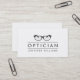 Eine moderne Visitenkarte für Optiker. Das Visitenkarten-Design zeigt eine Brille mit Ihrem Firmennamen zwischen zwei Trennlinien und Ihrem Namen. Auf der Rückseite finden Sie alle Kontaktdaten. Die Eigenschaften verschiedener ophthalmischer Geräte, wie Kontaktlinsen, Brillengläser, Sehhilfen oder Augenprothesen, werden von Optikern bestimmt, die die notwendige Korrektur des Sehvermögens einer Person vornehmen.