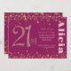 Feiern Sie mit dieser glamourösen 21. Geburtstagsfeier einen Meilenstein im Stil! Mit funkelnder Typografie aus Imitaten und Glitzer, einer kühlen, modernen Gestaltung und glänzenden Goldstar-Details auf einem reichhaltigen Beerenhintergrund ist diese Einladung perfekt für ein anspruchsvolles und lustiges Fest. Personalisieren Sie es mit dem Geburtstagsgast mit dem Namen, den Veranstaltungsdetails und den UAWG. Ideal für eine Diskothek, einen sozialen Club oder einen schicken Rahmen!