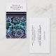 Eine elegante Kombination aus modernem Glitzer in türkisfarbenem Blau und lila Farbtönen mit schwarzblühendem Damaskus-Overlay. Schwarze dekorative Streifen Akzente. Doppelseitige, vollständig anpassbare Vorlage für Ereignisdesigner.