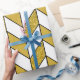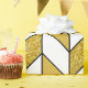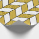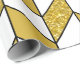 Dieses Verpackungspapier zeichnet sich durch ein elegantes Zickzack Design mit einem geometrischen Herringbone-Muster in weiß und Imitat Gold Glitzer mit schwarzen Linien.