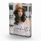Feiern Sie die Leistung Ihres Absolventen mit einem maßgeschneiderten Abschluss-Foto-Sake. Im Foto-Block befindet sich das vertikale Foto des Absolventen mit einem "Absolvent" in einem trendigen schwarzen Skript. Personalisieren Sie den modernen Abschluss-Foto-Block, indem Sie den Namen, die Schule und den Abschluss Jahr.