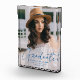 Feiern Sie die Leistung Ihres Absolventen mit einem maßgeschneiderten Abschluss-Foto-Sake. Im Foto-Block befindet sich das vertikale Foto des Absolventen mit einem "Absolvent" in einem angesagten blauen Skript. Personalisieren Sie den modernen Abschluss-Foto-Block, indem Sie den Namen, die Schule und den Abschluss Jahr.