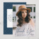 Moderner Foto Abschluss Dankeschön-Karte mit dem vertikalen Foto des Absolventen mit "Dankeschön" in einem handgeschriebenen Marine-Kalligraphie-Skript-Overlay und optionalem weißen Farbverlauf. Personalisieren Sie die Vorderseite des Abschlusses danke Ihnen Karte, indem Sie den Namen und Abschluss des Absolventen Jahr. Das Foto danke Ihnen Karte kehrt um Ihre individuelle Nachricht mit einem trendigen Marine und weiß gepunkteten geometrischen Muster. Entfernen Sie die benutzerdefinierte Nachricht, um Ihre eigene Handschrift zu schreiben.