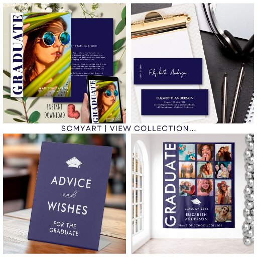 Modern Bold Navy Blue and White Graduation PartyDesignt von Sofia MyArt
