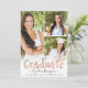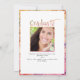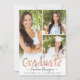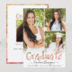 Moderne Abschluss-Ankündigung mit einem mehrfarbigen Pinselstrich GRADUATE-Titel auf der Vorder- und Rückseite mit insgesamt 4 Fotos (3 vorne und 1 hinten). Die Rückseite bietet einen Platz, um zusätzliche Informationen über den Absolventen (Leistungen und/oder künftige Pläne). Die Designfarben sind vorwiegend rot, maron, gelb und gold. HILFE: Für Hilfe bei der Modifizierung oder Personalisierung des Designs, bei der Übertragung des Designs auf ein anderes Produkt oder wenn Sie die Dinge koordinieren möchten, wenden Sie sich bitte an den Designer, BEVOR Sie die Bestellung über die Registerkarte Zazzle Chat MESSAGE oder per E-Mail makeitaboutyoustore@gmail.com.