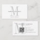 Dieses Design der Visitenkarte zeichnet sich durch einen eleganten und minimalen Stil aus, der mit einem großen Gray Monogramm im Hintergrund für eine kühne und dennoch elegante Touch sorgt. Die Vorderseite hebt den Namen und Titel in einem sauberen, modernen Schriftart hervor, während auf der Rückseite ein QR-Code neben ordentlich angeordneten Kontaktdetails mit einfachen Icons enthalten ist.