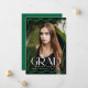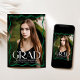 Feiern Sie Ihren Gymnasialabsolventen mit dieser modernen Ankündigung des Abschlusses, mit einem voll bleichenden senkrechten Foto gerahmt durch eine stilvolle grüne Wavy-Grenze. Die fett-weiße "Grad"-Schrift gibt eine Aussage, während der Name, die Schule und das Klassenjahr des Absolventen eine persönliche Touch hinzufügen. Auf der Rückseite befindet sich ein horizontales Foto mit Platz für eine individuelle Botschaft, das ist der perfekte Weg, diese besondere Leistung mit Freunden und Familie zu teilen.