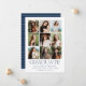 Feiern Sie die Leistungen Ihres Absolventen mit dieser modernen minimalistischen Abschluss-Ankündigung mit einem 9-Foto-Rasterlayout. "Graduate" wird elegant in der modernen Schrift auf einem knackigen, weißen Hintergrund dargestellt, mit Raum für die Personalisierung des Graduiertennamens, der Schule, des Abschlusses und zukünftiger Pläne. Die Rückseite dieser stilvollen Multi-Foto Abschluss Ankündigung zeigt ein klassisches marinebasiertes und weiß gestreiftes Muster für eine zeitlose Touch. Dieses individuell gestaltbare Design ist perfekt für Absolventen der Highschool und der Uni geeignet und unterstreicht so ihren Meilenstein.