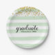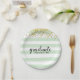 Glatter und stilvoller moderner grüner Streifenu. Goldconfetti-Absolvent-Abschluss-Party-Teller. Hat zusammenpassende Zusätze. Typografie ist kundengerecht und Sie können ein Foto Ihres Absolvent hinzufügen.