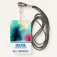 Benennen Sie Abzeichen mit einem coolen und stilvollen abstrakten Design. Wasserfarben mischen sich und mischen sich, um die Illusion eines Raumbildes zu schaffen. Grün mit lila, gelben und hellroten Wirbel und einer Mischung aus weißen Punkten und Sternen. Eine coole Trippy-Kreation.
