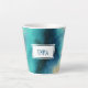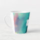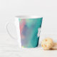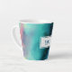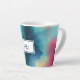 Personalisierte latte Tasse mit einem coolen und stilvollen abstrakten Design. Wasserfarben mischen sich und mischen sich, um die Illusion eines Raumbildes zu schaffen. Grün mit lila, gelben und hellroten Wirbel und einer Mischung aus weißen Punkten und Sternen. Eine coole Trippy-Kreation. Ein weißes Rechteck, oben platziert mit Ihrem Namen.