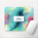 Ein Mousepad mit einem coolen und stilvollen abstrakten Design. Wasserfarben mischen sich und mischen sich, um die Illusion eines Raumbildes zu schaffen. Grün mit lila, gelben und hellroten Wirbel und einer Mischung aus weißen Punkten und Sternen. Eine coole Trippy-Kreation. Ein weißes Rechteck, oben platziert mit Ihrem Namen.