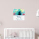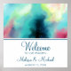 Herzlich willkommen auf unserem Hochzeitsposter mit einem coolen und stilvollen abstrakten Design. Wasserfarben mischen sich und mischen sich, um die Illusion eines Raumbildes zu schaffen. Grün mit lila, gelben und hellroten Wirbel und einer Mischung aus weißen Punkten und Sternen. Eine elegante künstlerische Schöpfung.