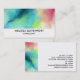 Künstlerische Visitenkarten mit einem coolen und stilvollen abstrakten Design. Wasserfarben mischen sich und mischen sich, um die Illusion eines Raumbildes zu schaffen. Grün mit lila, gelben und hellroten Wirbel und einer Mischung aus weißen Punkten und Sternen. Eine elegante künstlerische Schöpfung.