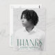 Einfache Abschluss danke Ihnen Postkarte mit dem senkrechten Foto des Absolventen mit "Dank" angezeigt in grün, moderne Kunst Deko Schrift. Personalisieren Sie die Vorderseite des Foto Abschluss danken Sie postcard, indem Sie den Namen des Absolventen, den Namen der Schule und Abschluss Jahr. Die Postkarte kehrt zurück, um Ihre Rücksendeadresse anzuzeigen und bietet Platz für Ihre getippte oder handgeschriebene Danksagung.