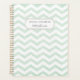 Individuell gestaltetes Planerheft mit pastellgrün lackiertem Zickzack/Zickzack Muster mit personalisiertem Namen.