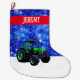 Moderner grüner Traktor auf Blue Großer Weihnachtsstrumpf