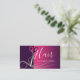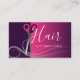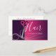 Moderne lila/rosa Verabredung Geschäfts-Karten. Die Ausrüstungsbeschreibungen ein Paare Scheren und elegantes Haar wirbeln. Der Hintergrund ist dunkles Lila und ein vibrierendes Rosa. Fertigen Sie den Schablonentext mit Ihren Geschäftsinformationen besonders an, um es Ihre eigene einzigartige Geschäfts-Telefonkarte zu machen. Grafik durch ChanDraws Kunst u. Entwurf. Fühlen Sie sich frei, mit mir in Verbindung zu treten, wenn Sie Hilfe bei der Kundenbezogenheit benötigen, oder wenn Sie Produkte zusammenbringen möchten. kepplemorgan@shaw.ca