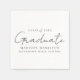 Steigern Sie Ihre Graduierungsparty-Dekoration mit unseren stilvollen Graduiertennapkins! Diese Servietten mit einem handgeschriebenen, schicken schwarzen Drehbuch verleihen Ihrem Fest eine Touch von Eleganz. Personalisieren Sie sie mit dem Namen des Absolventen, dem Abschluss und dem Schulnamen. Egal ob Sie Snacks oder Drinks servieren, diese Servietten sind ideal, um Ihrem High School- oder Uni-Abschluss-Party eine personalisierte Touch hinzuzufügen. Feiern Sie mit unseren Servietten aus der Graduiertenparty stilvoll Ihre Errungenschaften!