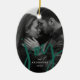 Elegantes, modernes Urlaubssornament, das Ihr Foto mit "joy" in einem grünen, handgeschriebenen Skript-Overlay präsentiert. Personalisieren Sie die Vorderseite des Ornaments, indem Sie Ihren Namen und das Jahr hinzufügen. Der Schmuck kehrt zu einem Muster von Schneeflocken aus der grünen und weißen Sternexplosion zurück.
