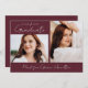 Mit unserer personalisierten Foto Abschlussfeier verkünden Sie den Meilenstein Ihres Absolventen stilvoll! Die Vorderseite zeigt 2 Fotos des Absolventen, mit "Graduate" in einem schicken, handgeschriebenen, weißen Drehbuch mit einem Hintergrund aus Maron. Passen Sie die Vorderseite der Einladung mit dem Namen Ihres Absolventen und Abschluss Jahr. Die Einladung zur 2-Foto-Graduierungsparty kehrt um, um Ihre Abschlussfeierdetails anzuzeigen. Diese Einladung eignet sich perfekt für Hochschul- oder Uni-Feiern und Set den Ton für eine unvergessliche Veranstaltung. Erstellen Sie dauerhafte Erinnerungen und laden Sie Ihre Lieben ein, sich mit unserer Foto-Abschlussfeier zu den Festlichkeiten zu beteiligen!