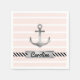 Trendige Papierservietten mit grauem Aquarellanker auf einem hellrosa und weiß gestreiften Hintergrund. Sie können das Design auch mit benutzerdefiniertem Text unter dem Anker personalisieren.