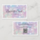 Die moderne und trendige Visitenkarte mit Ihrem Namen oder Firmennamen im Schrift-Typografie-Set vor einem stilvollen irisierenden Glitzer-Hintergrund. Diese Visitenkarte ist perfekt für alle beruflichen in der Schönheitsindustrie und darüber hinaus (z.B. Makeup-Künstler, Haarstylist, Nagelspezialist, Kosmetiksalon-Besitzer, Ästhetiker, Kosmetiker und vieles mehr). Sie können die Vorderseite mit Ihrem Namen und Titel (oder Website-Adresse/Ort) personalisieren und Ihre Kontaktinformationen (einschließlich Website-Adresse und Social-Media-Konten), scannbaren QR-Code auf der Rückseite hinzufügen.