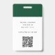 Ein modernes minimalistisches Corporate ID Abzeichen, das mit Ihrem Firmenlogo, Mitarbeitername, ID-Nummer, Kontaktdaten und QR-Code auf der Rückseite personalisiert werden kann. Dieses berufliche Abzeichen-Design besticht durch moderne minimalistische Typografie und eine grün-weiße Farbpalette. Ideal für alle beruflichen Geschäfte wie die Hotellerie, wie das Abzeichen für Hotelangestellte, echtes Anwesen oder andere Geschäfte.