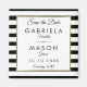Mit einem klassischen Schwarz-Weiß-Streifen Hintergrund bietet dieser elegante Speichern des Datums-Magneten einen eleganten Imitat mit Goldfolie, der Ihr Save the Date Set in eleganter Typografie umrahmt. Entwickelt von Thisisnotme©
