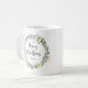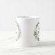 Diese schlichte und stilvolle Tasse bietet einen atemberaubenden Aquarellkranz mit grünen und Imitaten goldenen Blätter und roten Heiligenbeeren, sowie eine schwarz-moderne Schrift-Typografie, die auf weißem Hintergrund "Frohe Weihnachten" sagt.
