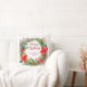 Dieses schlichte und stilvolle Kissen besticht durch einen atemberaubenden Aquarellkranz mit grünen Blätter und roten Heiligenbeeren, sowie durch eine moderne Schriftzeichen, die auf weißem Hintergrund "Frohe Weihnachten" sagt.