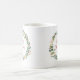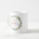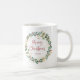 Diese schlichte und stilvolle Tasse bietet einen atemberaubenden Aquarellkranz mit grünen und Imitaten goldenen Blätter und roten Heiligenbeeren sowie eine moderne Schriftzeichen, die auf weißem Hintergrund "Frohe Weihnachten" sagt.