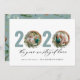 Modernes, minimales Blatt Kranz Frohe Weihnachten 2020 das Jahr bleibe wir Zuhause Script Weihnachtskarte. Handgemalte Eukalyptus, minimales Laub und modernes rustikales Rattanfeuer verleihen dieser Ferienkarte ein luxuriöses Ambiente. In klassischen Grüntönen, Braun und Grau.