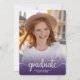 Feiern Sie den Absolventen stilvoll mit dieser schicken und modernen Abschluss-Einladung. Mit einem ganzseitigen Portrait auf der Vorderseite mit eleganter Schrift-Typografie behalte dieses Design es einfach und stilvoll. Der Rücken zeigt eine Collage von drei weiteren Fotos, die sich perfekt für besondere Momente eignen. Mit klaren Linien und einem zeitlosen, weißen Hintergrund ist diese Einladung ideal für Highschool oder Uni-Abschlüsse. Personalisieren Sie die Details, um es einzigartig zu machen! Weiß auf lila.