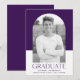 Mit dieser einfachen und stilvollen Abschluss-Ankündigung, die ihr Foto in einem eleganten Bogen-Rahmen präsentiert, kündigen Sie die besondere Leistung Ihres Absolventen an. Der lila und weiße Blockhintergrund verleiht eine moderne Touch, während "Graduate" in fett lila Schriftzeichen für einen auffallenden Kontrast dargestellt wird. Personalisieren Sie diese Ankündigung des Abschlusses, indem Sie den Namen, die Schule und den Abschluss des Absolventen hinzufügen, und machen Sie es zu einem wahrhaft einzigartigen Sake für Freunde und Familie zu schätzen. Dieses elegante Design ist perfekt für Absolventen der Highschool und der Uni geeignet und zeichnet sich durch seine herausragende Qualität aus.