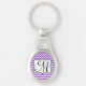 Moderner Lila Glitzer Zickzack Zig Zag Stripe Monogram, erste Schlüsselkette