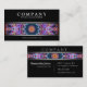 Stilvolle moderne Visitenkarte mit einem größtenteils schwarzen Hintergrund. Zwischen dem Silber stehen farbige Linien, welche stellen die Details eines lila Blume Mandala darstellen und einen netten Pop der Farbe zur Verfügung und nehmen diesen Kontakt auf, zu kardieren, heraus von der Menge. Klicken fertigt besonders an, um mehr Kontrolle über Schriftartwahlen und den Gebrauch von Raum für Text zu haben.