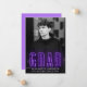 Mit unseren Ankündigungen für den Neonabschluss kündigen Sie die besondere Leistung Ihres Abschlusses an. Die Ankündigung des modernen Abschlusses zeigt das vertikale Foto des Absolventen mit "Grad" in lila Neonschrift. Personalisieren Sie die Ankündigung des Neon-Abschlusses, indem Sie den Namen, den Namen der Schule und das Jahr des Abschlusses hinzufügen. Die Ankündigung kehrt zurück, um einen soliden lila Hintergrund mit Platz für zusätzliche Fotos und/oder Text anzuzeigen. Die Ankündigung des Foto Abschlusses ist sowohl für Absolventen der Highschool als auch für Absolventen der Uni ideal.
