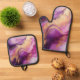 Moderner Lila und goldener Abstrakter Luxus- Ofenhandschuh & Topflappen-Set