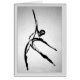 Eine einzige, abstrakte menschliche Zahl einfach und dehnt elegant seitwärts durch den Raum aus, scheinbar gefroren während eines Augenblicks in einer Pose des modernen Tanzes.