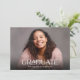 Dieses Foto mit horizontalem Abschluss bietet ein stilvolles Typografie-Overlay. Personalisieren Sie die Rückseite mit einem zweiten vertikalen Foto und Ihren Graduierungsparty Einladungsdetails.