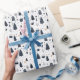 Dieses Weihnachtsgeschenk-Motiv ist eine wunderbare Art, ein Weihnachtsgeschenk zu verpacken. Modernes, minimalistisches abstrakt festliches Winterdesign in Schwarz, Weiß und Beige. Ein modernes und auffallendes Muster aus Bäumen, Tassen heißer Schokolade und Sternen.
