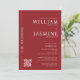 Ein elegantes und raffiniertes Hochzeitsdesign, das sich perfekt für Paare eignet, die eine moderne Touch suchen. Dieses Template weist einen fett roten Hintergrund auf, der Eleganz und Stil ausstrahlt. Die Namen werden in einem klassischen Schriftart mit weißer Serife hervorgehoben, was dem Design einen zeitlosen Charme verleiht. Der Satz "Die Hochzeit" ist elegant am links Rand positioniert, die Bühne für eine intime Ansammlung. Das Layout ist sauber und organisiert, sodass alle Veranstaltungsdetails übersichtlich dargestellt werden. Dieses Design umfasst individuell anpassbare Felder für Veranstaltungsdatum, -zeit und -ort, die es Ihnen erleichtern, sich für Ihre Familie und Freunde zu personalisieren. . Die Einladung enthält auch einen qr-Code, um auf Ihre Hochzeitswebsite zu verlinken und somit ein nahtloses Erlebnis für Gastgeber und Gäste zu gewährleisten. Dieses Einladungs-Design verbindet moderne Einfachheit mit klassischer Eleganz und macht es zu einer herausragenden Wahl für jeden Hochzeitstag. Wenn Sie eine andere Farbe für Ihr Hochzeitsthema wünschen, dann kontaktieren Sie mich bitte über meinen Meldungsknopf mit Ihrem gewünschten Farbhex-Code und ich freue mich, ihn für Sie zu ändern.