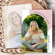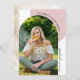 Dieses moderne Abschluss lädt zu einem trendigen Foto mit Bogengang ein. Das Design ist akzentuiert mit einer leichten, staubigen rosa Farbe und handgeschriebenem Text. Die Rückseite bietet ein vollständiges Foto mit dem Einladungsüberlagerungssystem.