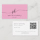 Moderner minimaler, eleganter Monogramm-Pink-QR-Co Visitenkarte