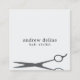 Moderne, anpassbare Visitenkartenvorlage mit grauer Schere. Ideal für Schönheitssalon, Friseur. Modernes minimales Design.
