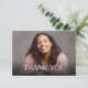 Dieser Abschluss Dankeschön-Karte verfügt über ein modernes minimales Design mit einem horizontalen Foto, das die Vorderseite der Karte ausfüllt. Der weiße Text überlagert das Ende des Fotos. Benutzerdefinierter Text auf der Rückseite, können Sie eine persönliche Danksagung hinzufügen.